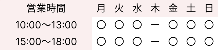 ※祝日も営業しております。(木曜日が祝日の場合はお休み)